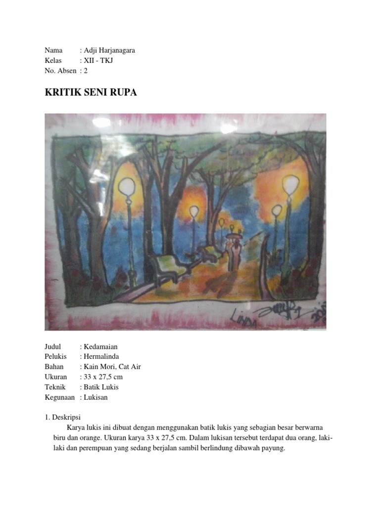 Muhammad Galang Irnanda Galang Koko A. Hasil tanggapan melalui kritik. 23 Pengertian Seni Lukis Menurut Para Ahli Terlengkap Oleh dosen pendidikan 2 diposting pada 16 02 2021Lukisan contoh kritik karya seni rupa beserta gambarnya.
